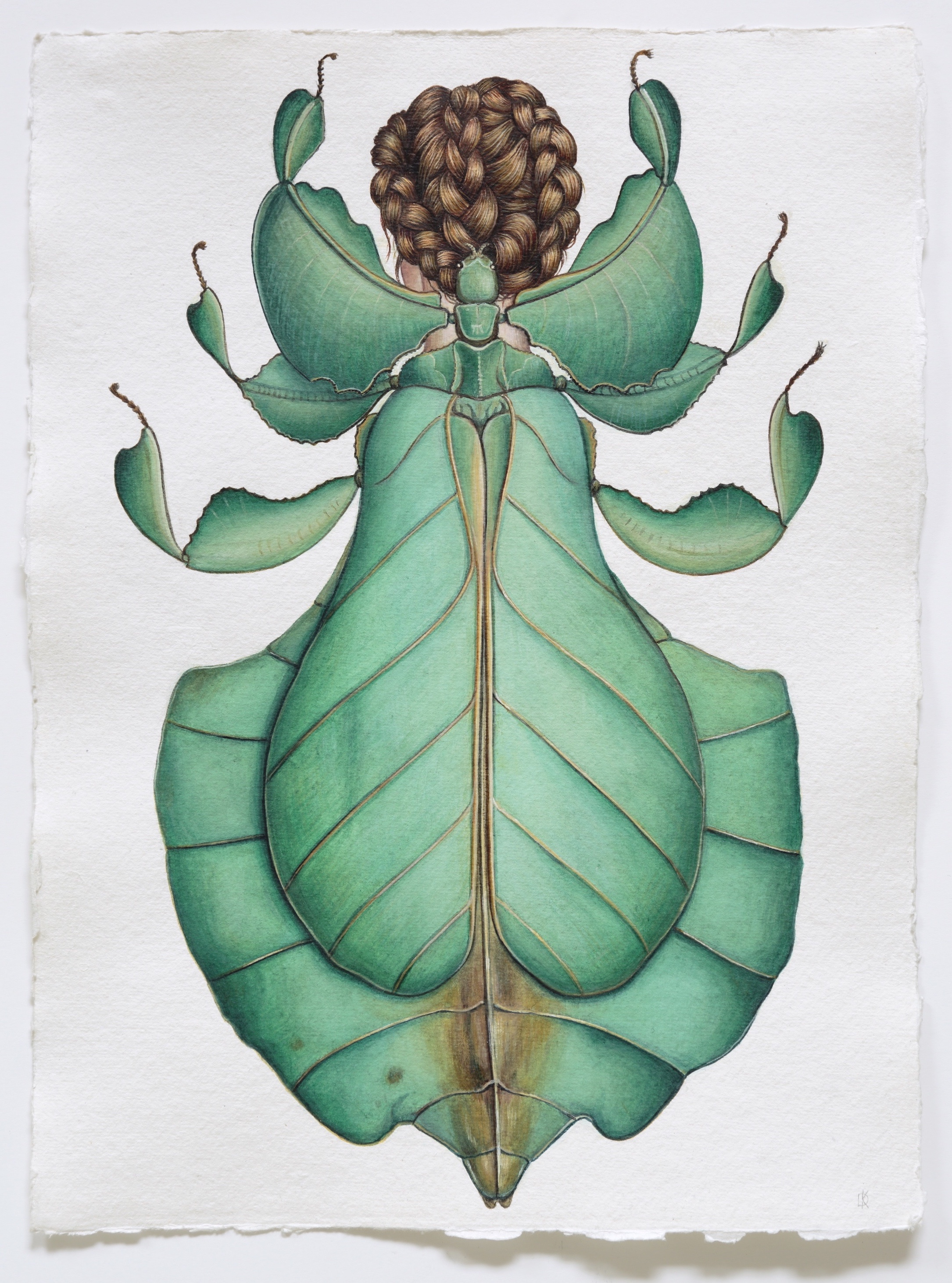 Deborah’s watercolour Phyllium giganteum homo insecta, 2018, has been shortlisted for Anthropocene, the R & M McGivern Prize 2019.