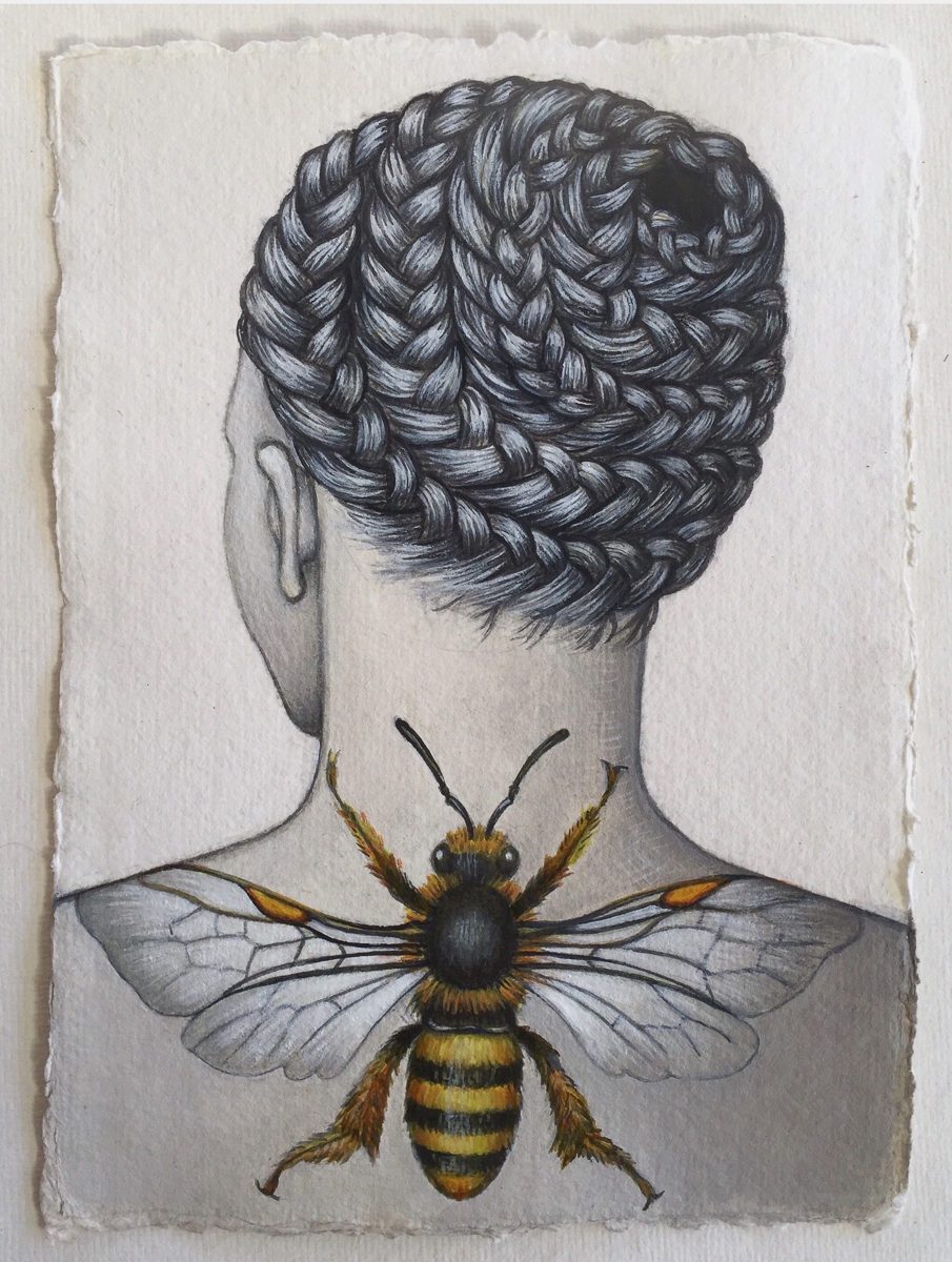 Bee keeper, 2020, pigmented drawing ink and gouache, 21 x 15 cm