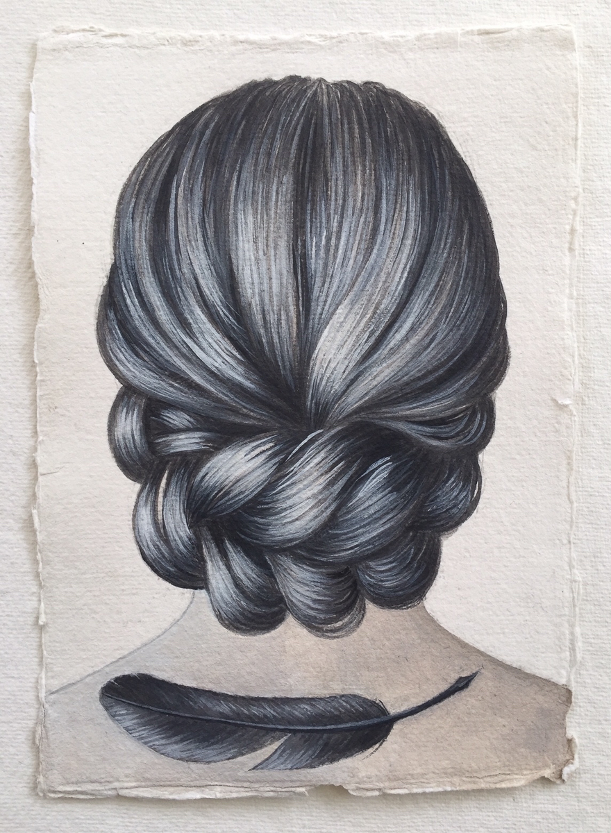 Feather tattoo, 2019, pigmented drawing ink and gouache, 21 x 15 cm