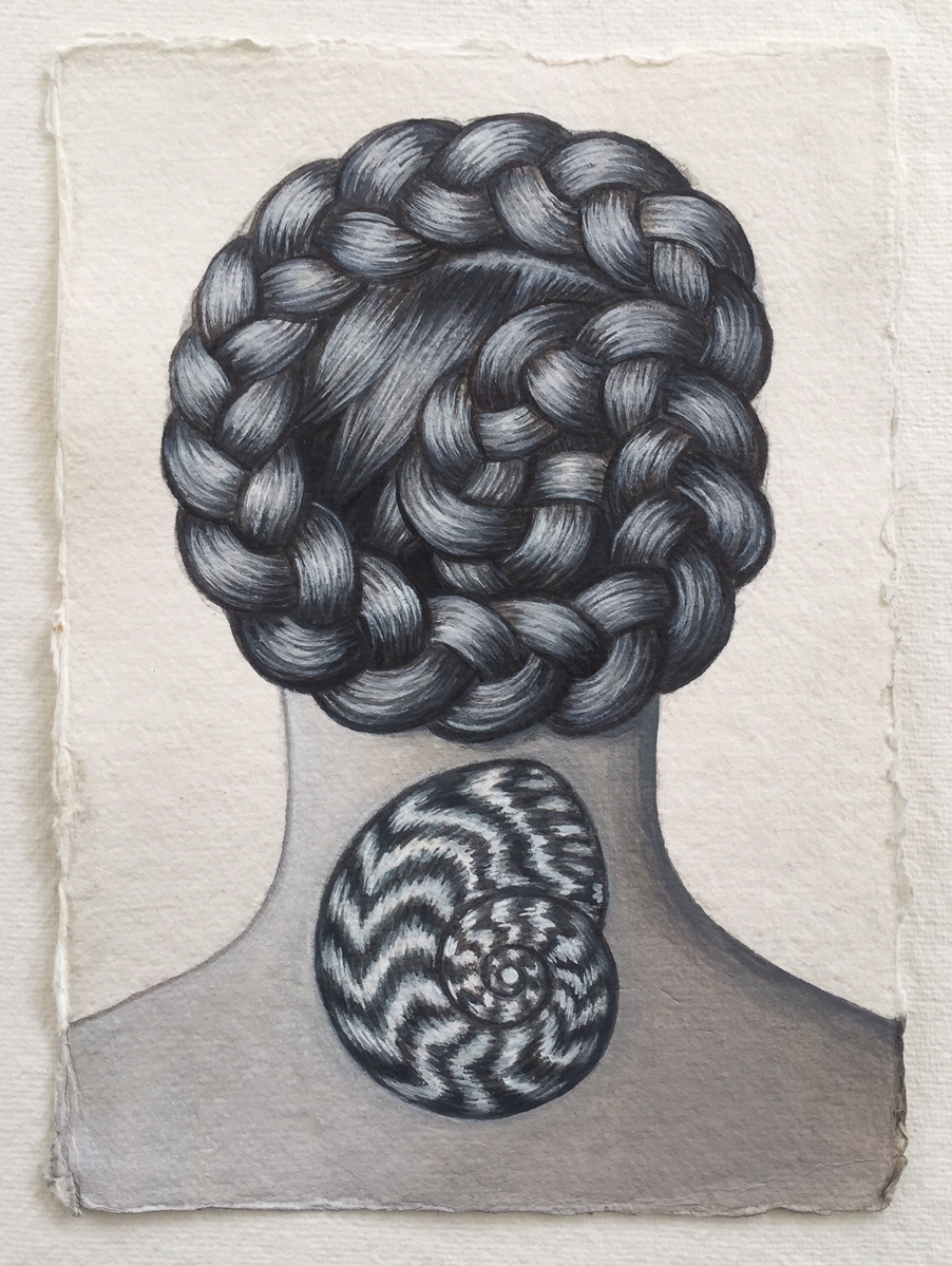 Shell tattoo, 2019, pigmented drawing ink and gouache, 21 x 15 cm