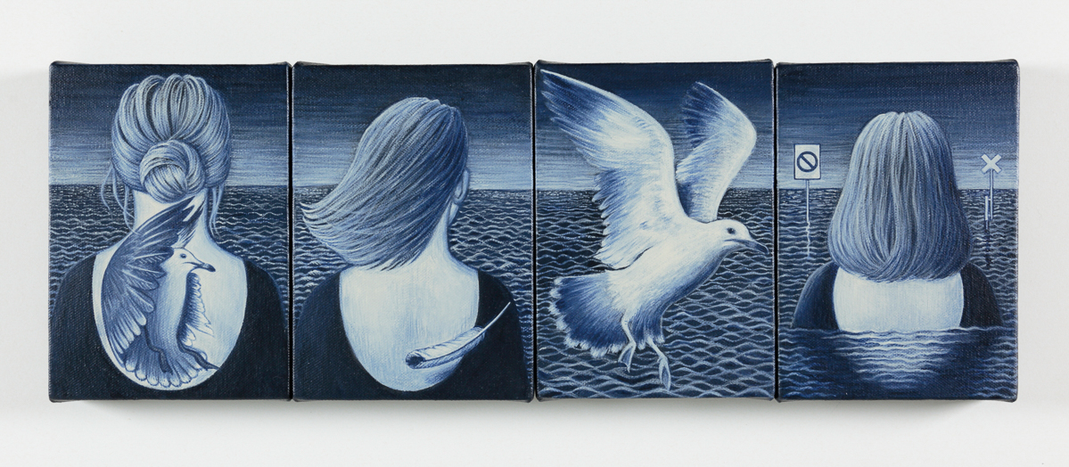 Beyond the Sea, 2021, quadriptych, acrylic on four canvases, 18 x 12.5 cm (each panel)