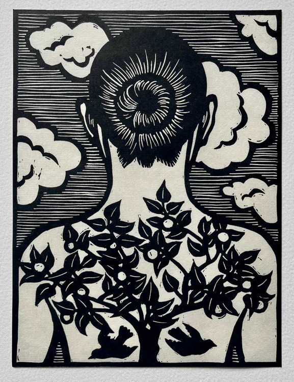 The Heavens Declare 2, 2023, linocut, 20 x 15 cm, ed. 30